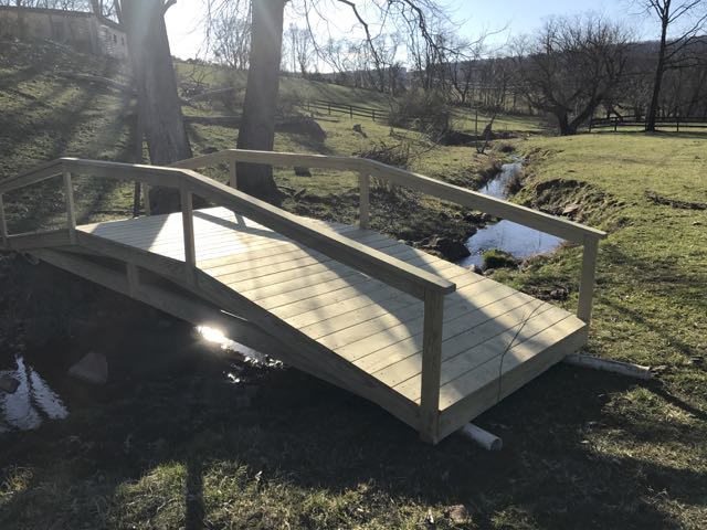 So, now I am preparing for the market. Below are a few shots of the very beginning of the process. Below shows the original area chosen for the new placement of the coop, new coop, and the protected runs. Lastly, now that the existing coop will no longer be located by the house, and across the creek, near the barn, a bridge was added so that I could walk from one side of the farm to the other.